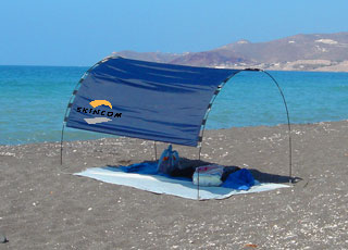 Sonnen-, Wind- und Regenschutz für 1-2 Personen mit dem Sonnenstand anpassbarem Sonnentuch!!!UV-Protect 50 (UPF Standard 801)Praktisch, leicht und felxibel (in ca. 4 Minuten einsatzbereit - nur 2,6 kg, Packmaße nur: 56 x 13 cm Durchmesser)Maße Bodentuch: ca. 195 cm x 135 cmMaße Sonnentuch: ca. 190 cm x 120 cm - Höhe 120 cmAufgebaut: lxhxb 195 x 135 x 140 cm